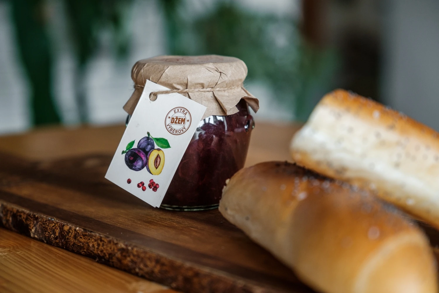 Džem z vlastních švestek odrůdy Čačanská lepotica doplněný růžovým pepřem, extra méně sladký.